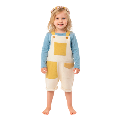 Confeccionada em tecido macio e confortável, permite liberdade de movimentos e bem-estar durante as brincadeiras. O design com recortes e bolsos aplicados traz charme e identidade à peça, tornando o visual leve e atemporal.